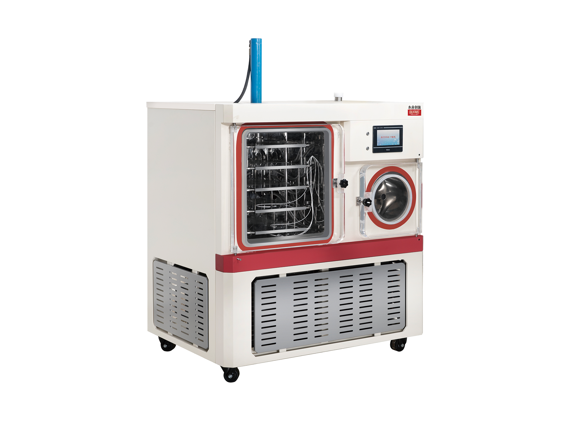 原位凍幹設計(jì),避免物料轉移過程帶來(lái)的污染;幹燥室采用高(gāo)透光無色透明(míng)有(yǒu)機玻璃門(mén),在操作(zuò)過程中能清晰觀察物料的變化過程;