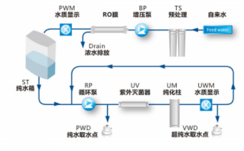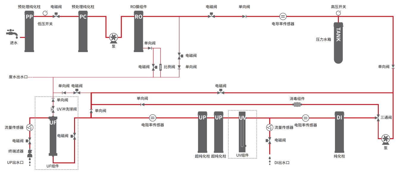 RO水(shuǐ)不合格自動排放功能,确保進入後端純化組件的純水(shuǐ)質量